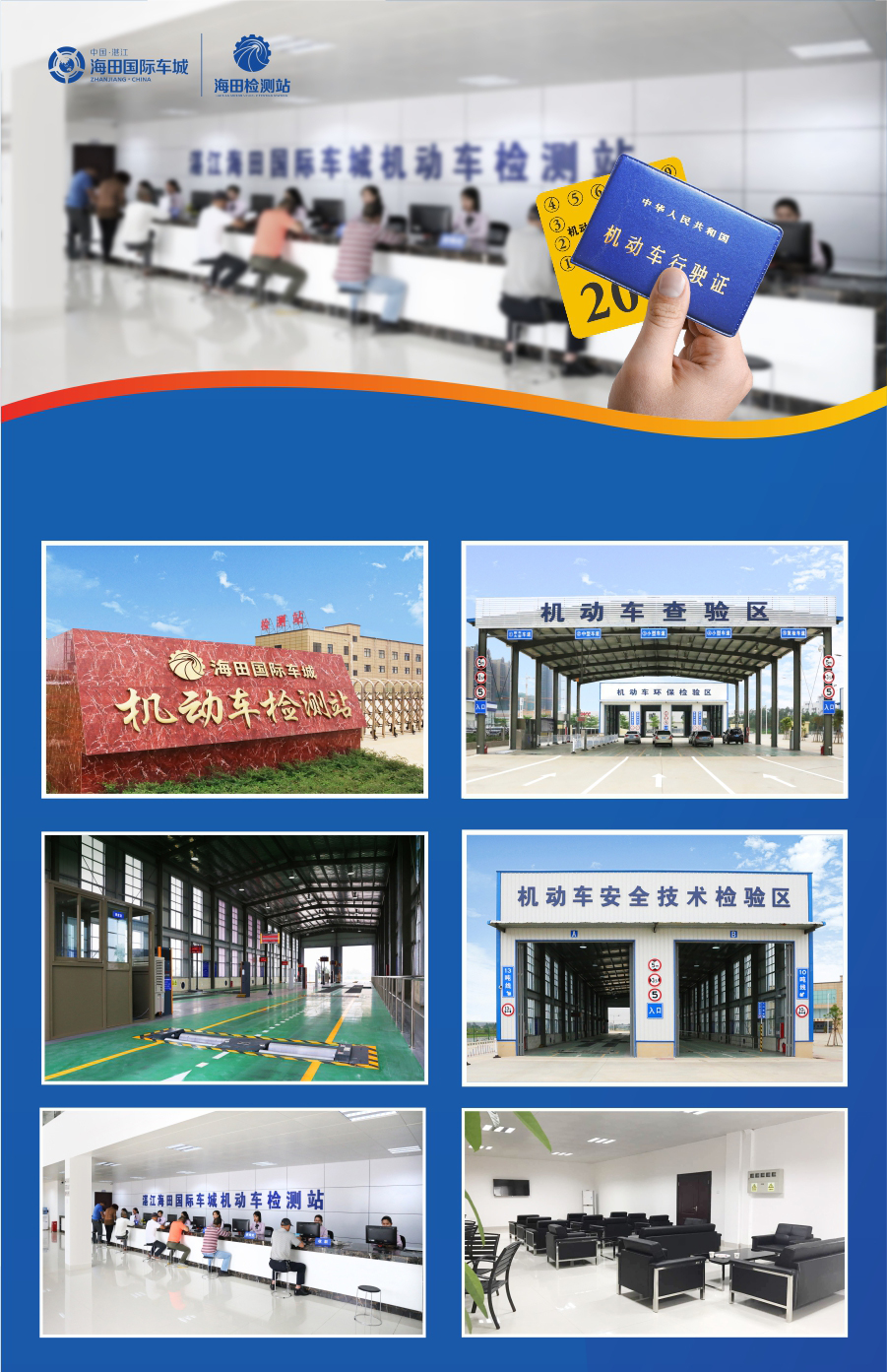 湛江海田国际车城机动车检测站有限公司成立于2016年2月,是由广州军区赤坎生产基地支持地方经济建设,与湛江海田国际车城有限公司合作开发建设的项目,主要经营机动车检测业务,是湛江市“十三五”规划重点项目,是目前粤西规模大、等级高、技术水平领先的机动车检测服务公司。项目选址于海田国际车城内,临近325国道,交通便利,辐射面广,极大的方便了市民的车辆检测。项目总投资3000余万,占地面积16000余平方米,包含3个检测车间(外检、环检、安检)和1幢办公楼,站内设有大型停车场。